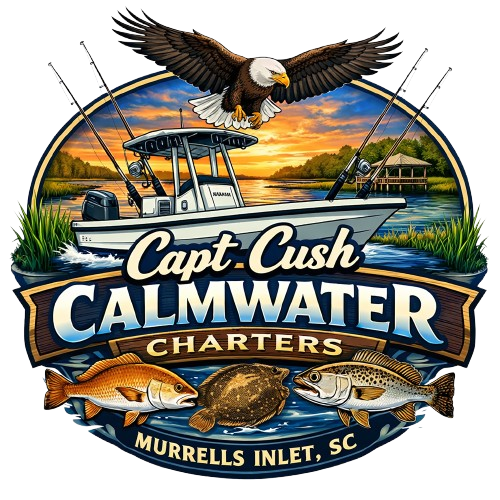 Capt Cush Calmwater Charters in Murrells Inlet, SC offers family-friendly inshore fishing trips targeting Redfish, Speckled Trout, Flounder, and Black Drum.